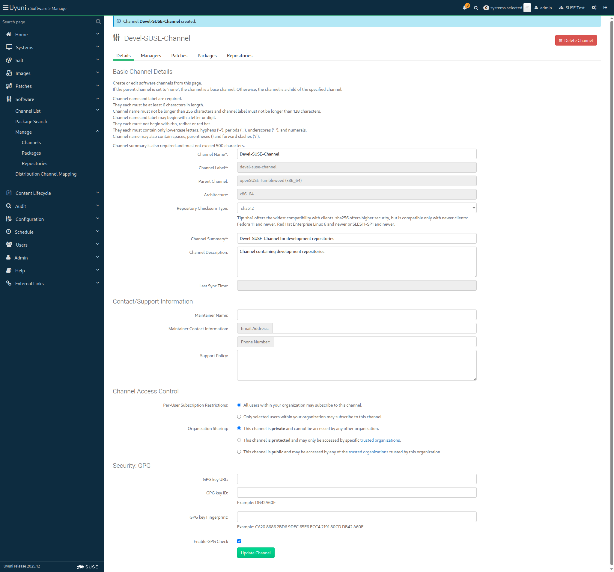 14:46:31:000 - 14:46:32:000 | Current URL: https://uyuni-master-server.sumaci.aws/rhn/channels/manage/Edit.do?cid=131