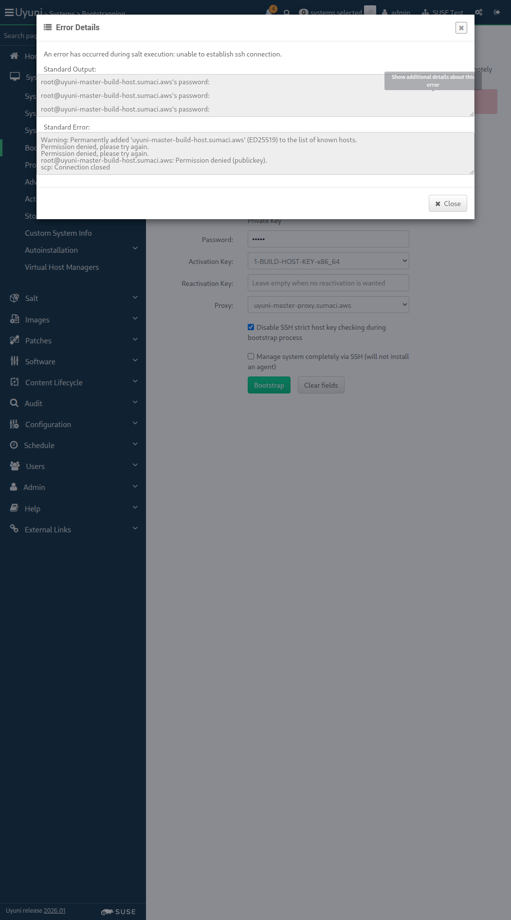 17:05:49:000 - 17:10:04:000 | Current URL: https://uyuni-master-server.sumaci.aws/rhn/manager/systems/bootstrap