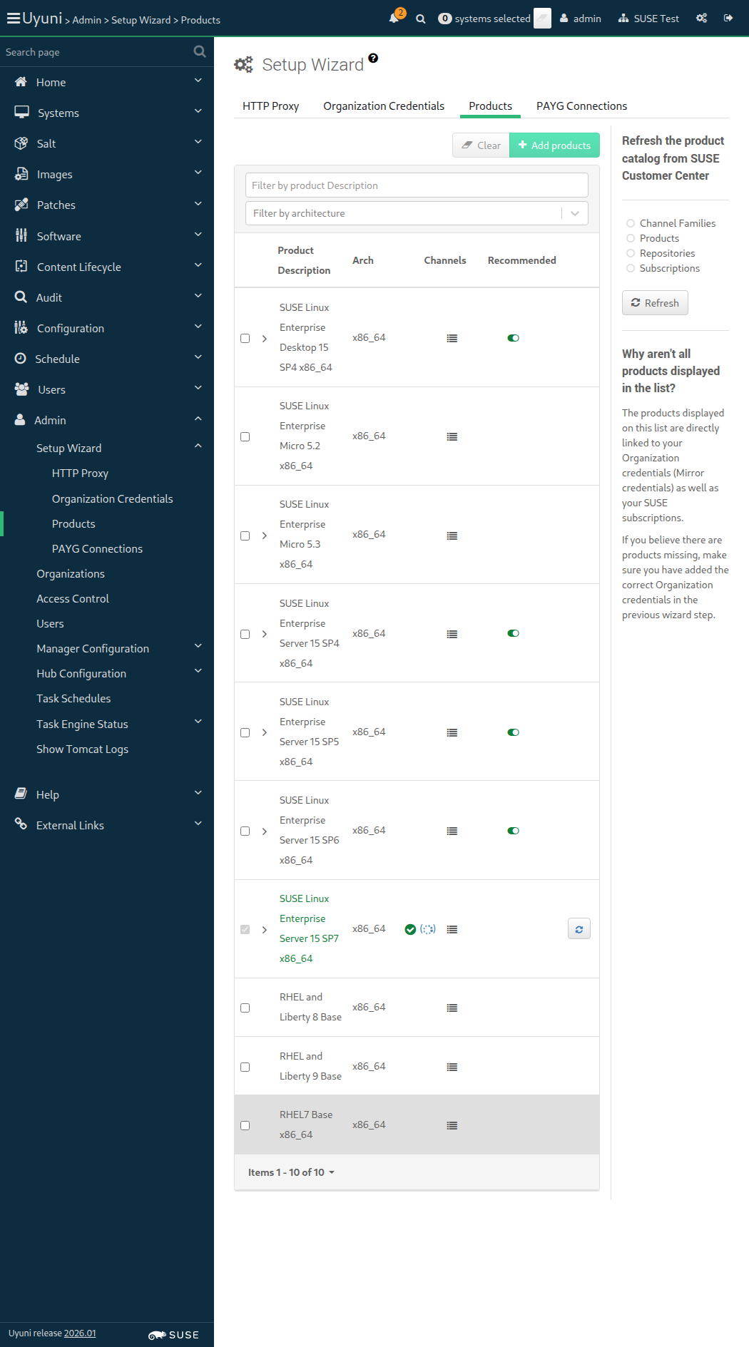 19:19:01:000 - 20:00:24:000 | Current URL: https://uyuni-master-server.sumaci.aws/rhn/manager/admin/setup/products
